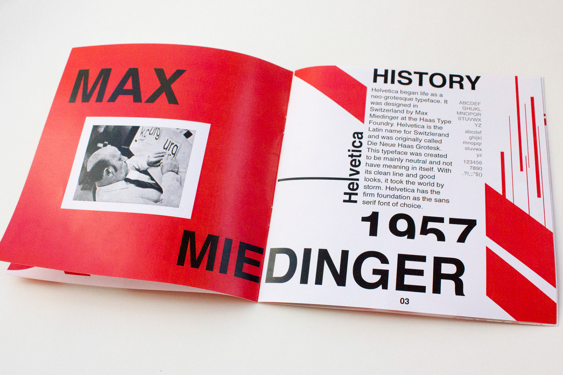 Design a type specimen for Helvetica including creator, history, glyphs, uppercase/lowercase letters